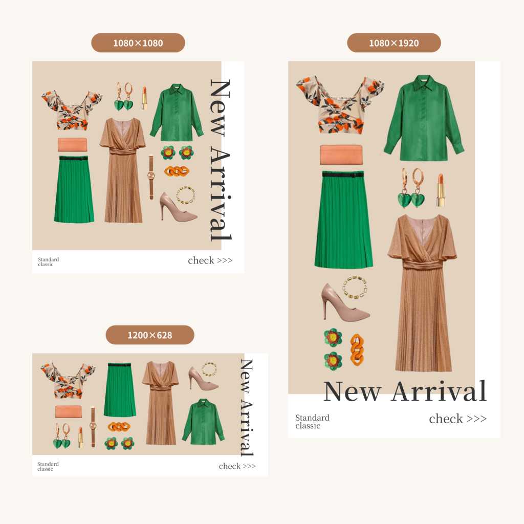 カラーは商品に合わせた秋×大人っぽさを表現できるベージュを使用し、テキストは印象を引き締める黒を使用しています。